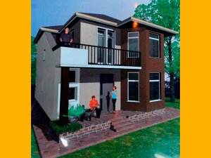 На первом этаже светлая просторная гостиная (24,67 кв. м.), кухня (16,12 кв. м.) с выходом на задний двор, спальня (16,45 кв. м.), совмещенный санузел (3,88 кв. м.). Удобная лестница на второй этаж.
